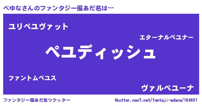 | 男性向けラノベタイトル風あだ名 | 『ぺゆなという概念が存在しない退屈な世界 』 |