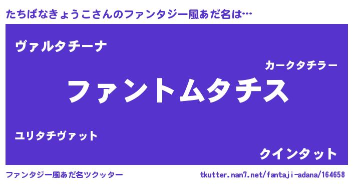 | 男性向けラノベタイトル風あだ名 | 『たちばなきょうこの嫁は女の子じゃないと思った?』 |
