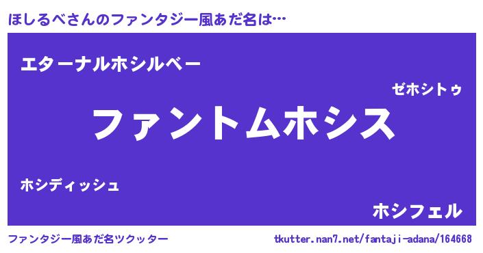 | 意味不明あだ名 | 『とにかく怪しいほしるべ』 |