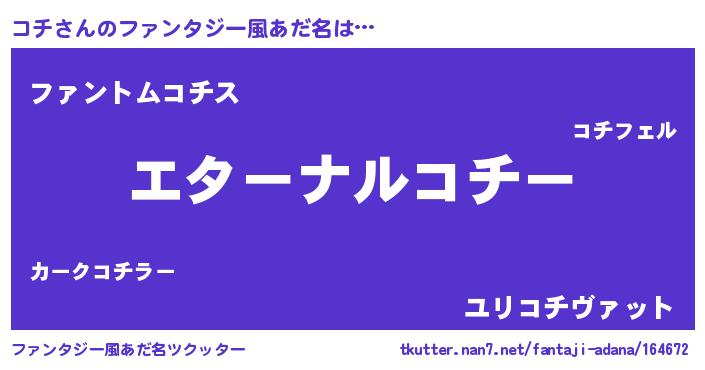 | ヒーロー風カッコイイあだ名 | 『ウルトラコチマン』『暗黒騎士コチ』 |