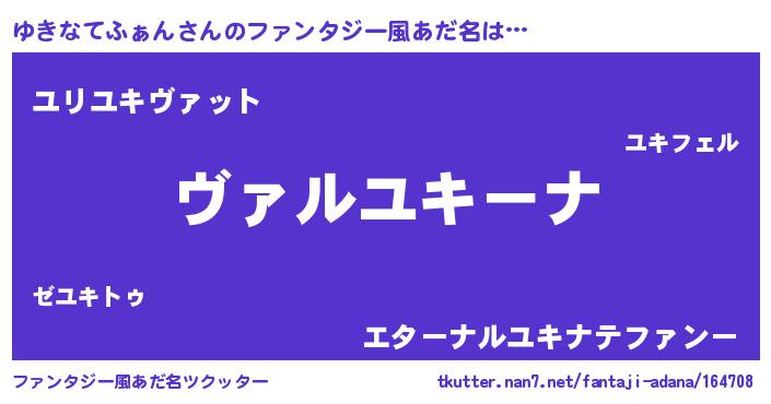 | 男性向けラノベタイトル風あだ名 | 『魔弾の王とゆきなてふぁん』 |