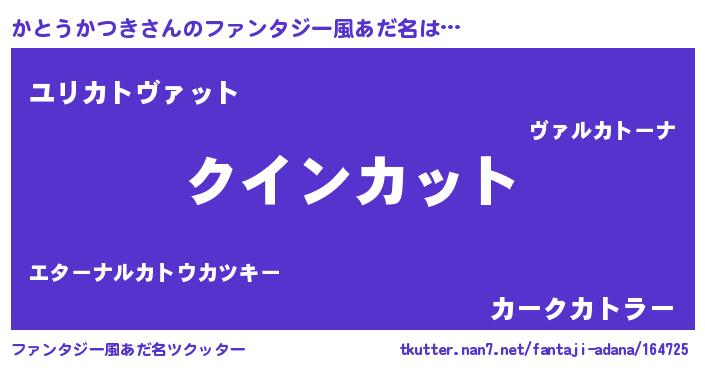 | 男性向けラノベタイトル風あだ名 | 『おまえをオタクにしてやるから、俺をかとうかつきにしてくれ! 』 |
