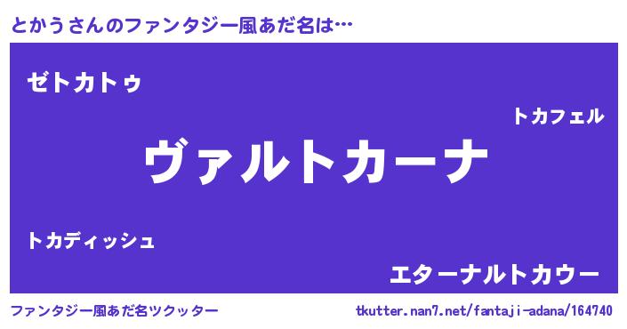 | ヒーロー風カッコイイあだ名 | 『仮面トカダー』『究極戦士トカウ』 |