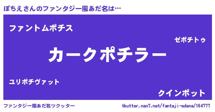 | 意味不明あだ名 | 『とにかく怪しいぽちえ』『自称ぽちえ』 |