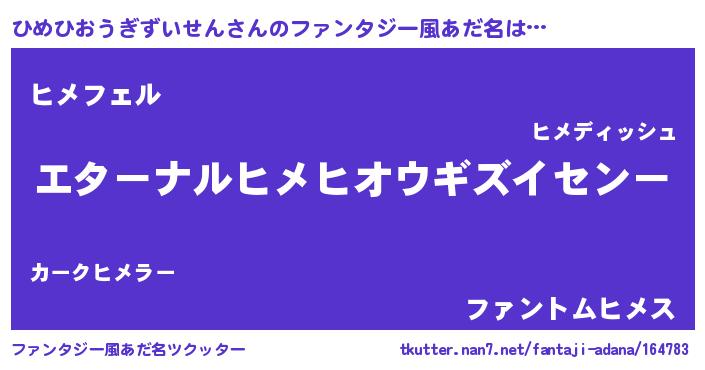 | 意味不明あだ名 | 『ひめひおうぎずいせんフォーエバー』 |