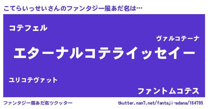 | 女子向けラノベタイトル風あだ名 | 『こてらいっせいの雑貨屋さん』 |