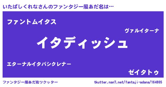 | ヒーロー風カッコイイあだ名 | 『ネオイタバシクレナ』『炎刃騎士イタ』 |