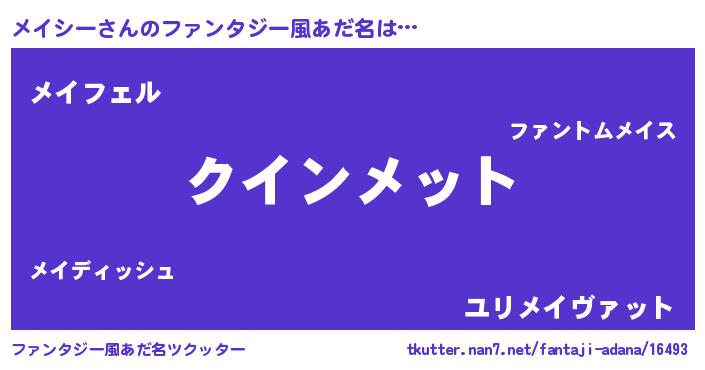 | ヘコむあだ名 | 『メイっふぃ~』『メイぷりん』 |