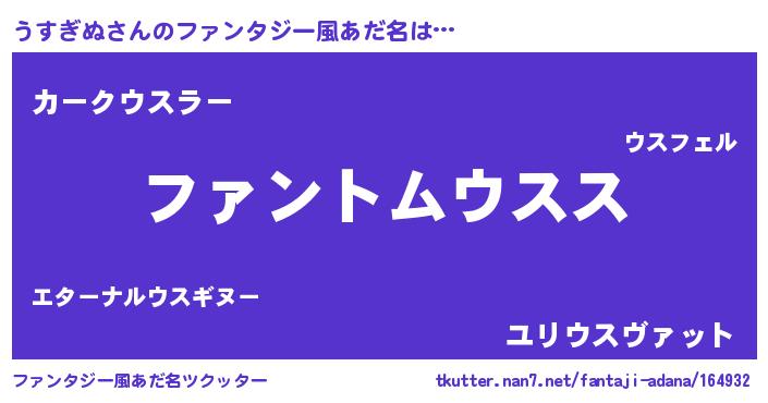 | 男性向けラノベタイトル風あだ名 | 『うすぎぬに滅ぼされるだけの簡単なお仕事です』 |