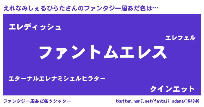 | 女子向けラノベタイトル風あだ名 | 『えれなみしぇるひらたは平凡を望む』 |