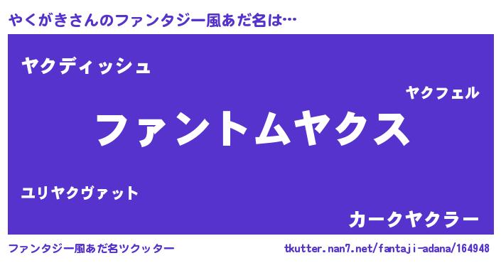 | ヒーロー風カッコイイあだ名 | 『天弓騎士ヤク』『ネオヤクガキ』 |