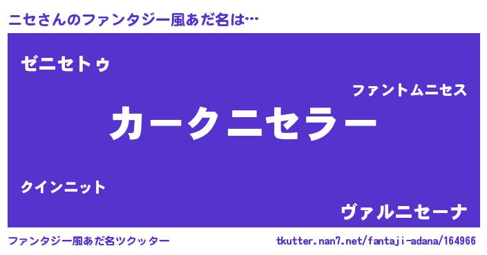 | 女子向けラノベタイトル風あだ名 | 『シンデレラニセ家の靴箱館』『闇のニセ』 |