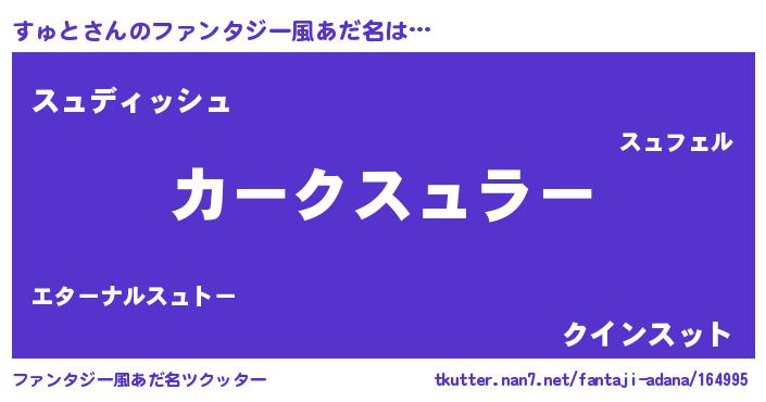 | 伝説のあだ名 | 『古より伝わる勇者すゅと』 |