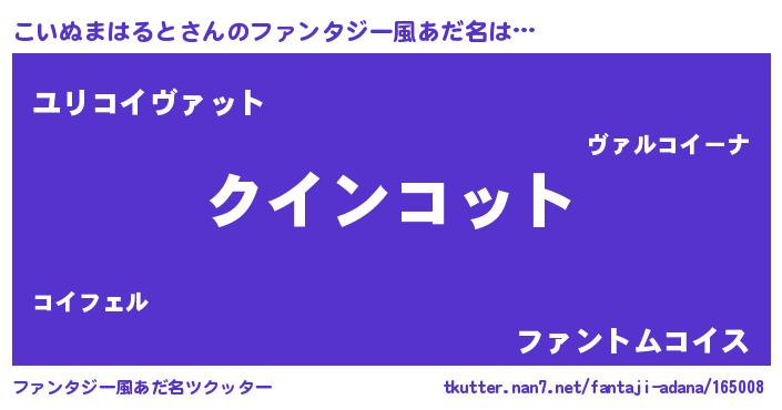 | 男性向けラノベタイトル風あだ名 | 『ノーゲーム・ノーコイヌマハルト』 |