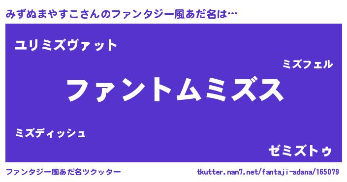 | 男性向けラノベタイトル風あだ名 | 『みずぬまやすこの嫁は女の子じゃないと思った?』 |