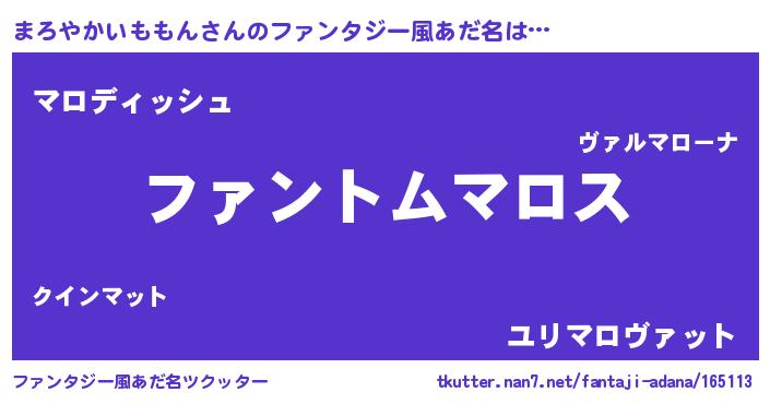 | 女子向けラノベタイトル風あだ名 | 『まろやかいももんは平凡を望む』 |