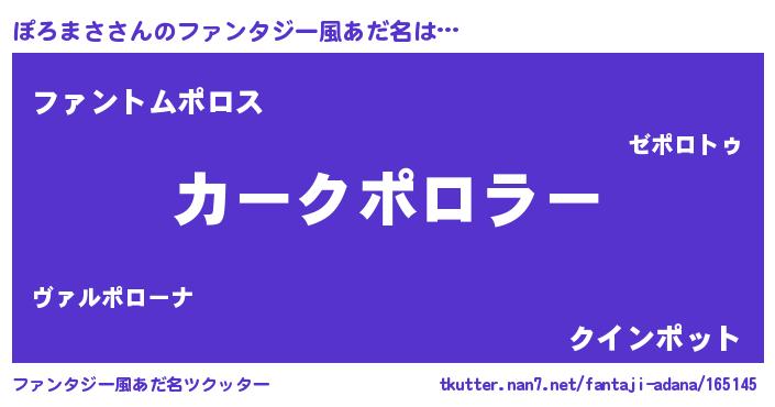| ヒーロー風カッコイイあだ名 | 『幻影騎士ポロ』『正義の使者ぽろまさ』 |
