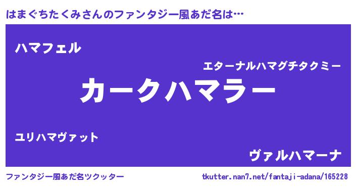 | 欧米人風あだ名 | 『はまぐちたくみ・ステッグマイヤー』 |