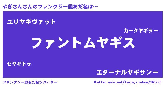 | ヒーロー風カッコイイあだ名 | 『天弓騎士ヤギ』『ウルトラやぎさんマン』 |