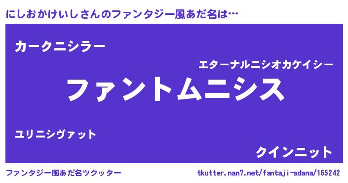 | 女子向けラノベタイトル風あだ名 | 『にしおかけいし様がみてる』 |