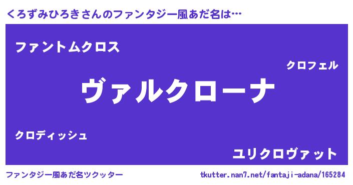 | 男性向けラノベタイトル風あだ名 | 『魔弾の王とくろずみひろき』 |