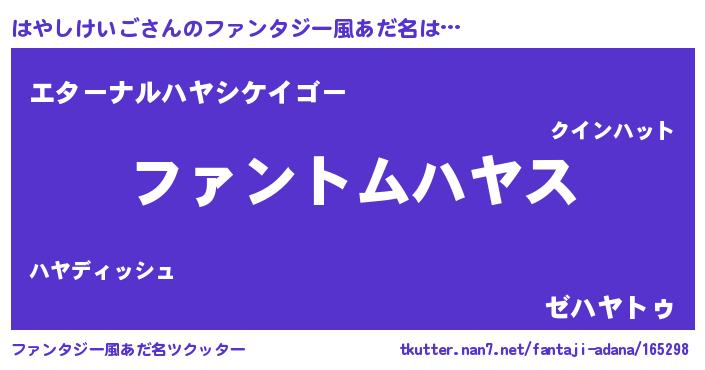 | ヒーロー風カッコイイあだ名 | 『魔戒騎士ハヤ』『ネオハヤシケイゴ』 |