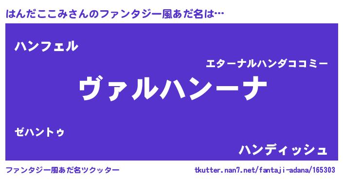 | ヘコむあだ名 | 『はんもー』『はんだここみ(遠い目)』 |