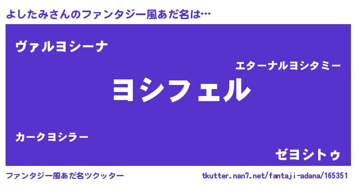 | 胡散臭い通販商品みたいなあだ名 | 『億万長者になれる水晶球…その名も「よしたみ」』 |