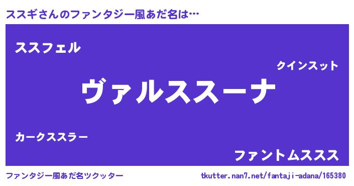 | 男性向けラノベタイトル風あだ名 | 『この素晴らしい世界にススギを!』 |