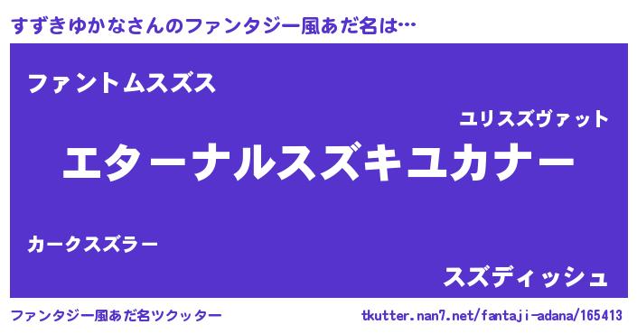 | ポケモン風あだ名 | 『スズキダネ』『ヒスズキユカナ』 |