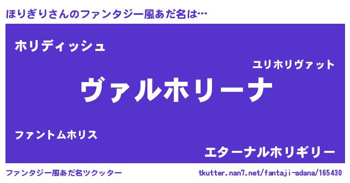 | 男性向けラノベタイトル風あだ名 | 『この素晴らしい世界にほりぎりを!』 |