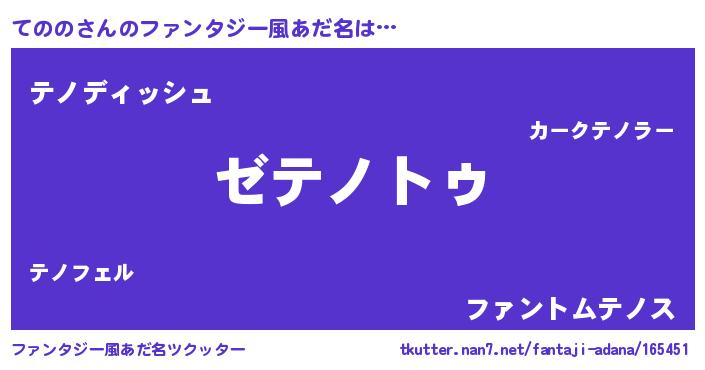 | ポケモン風あだ名 | 『テノセウス』『ゼニテノ』 |