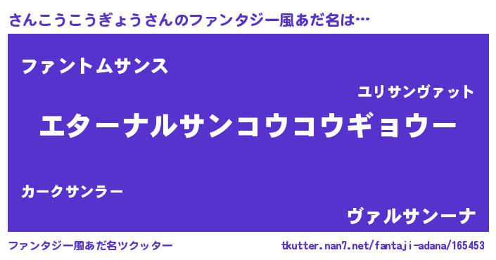 | 欧米人風あだ名 | 『さんこうこうぎょうクリステル』 |