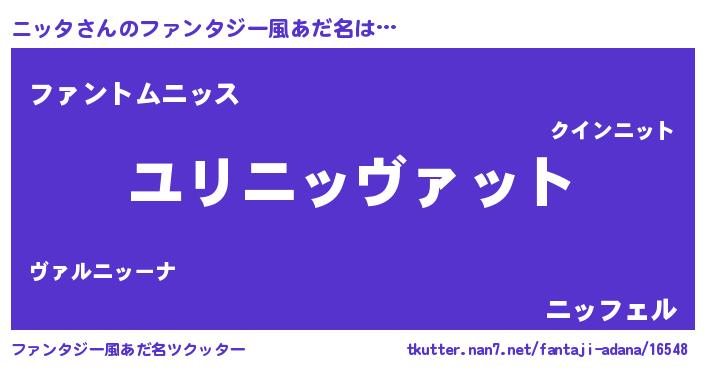 男性向けラノベタイトル風あだ名 | 『ニッタに滅ぼされるだけの簡単なお仕事です』 |