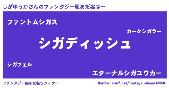 | ヘコむあだ名 | 『しがゆうか(笑)』『しが太郎』 |