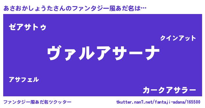 | 男性向けラノベタイトル風あだ名 | 『魔弾の王とあさおかしょうた』 |