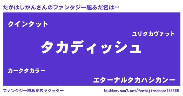 | 男性向けラノベタイトル風あだ名 | 『たかはしかんという概念が存在しない退屈な世界 』 |