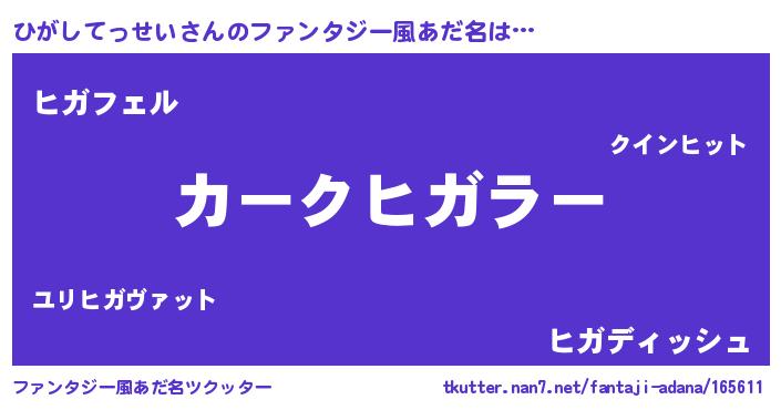 | 自動車の名前っぽいあだ名 | 『フェヒーガ』『ヒガティマ』『ヒンR』 |