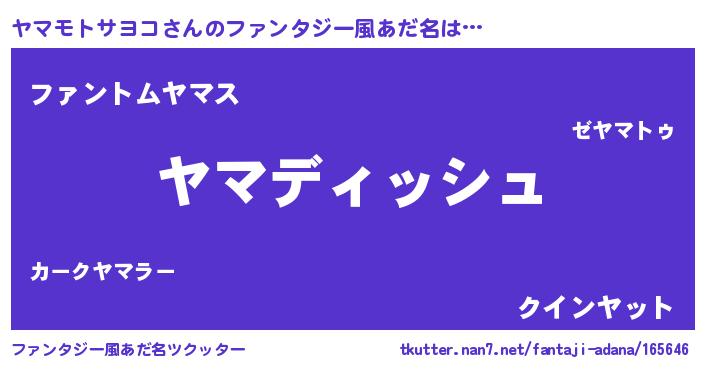| 欧米人風あだ名 | 『ダルビッシュヤマモトサヨコ』 |