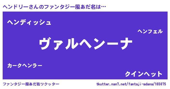 ヘンドリーさんのファンタジー風あだ名をツクッター!