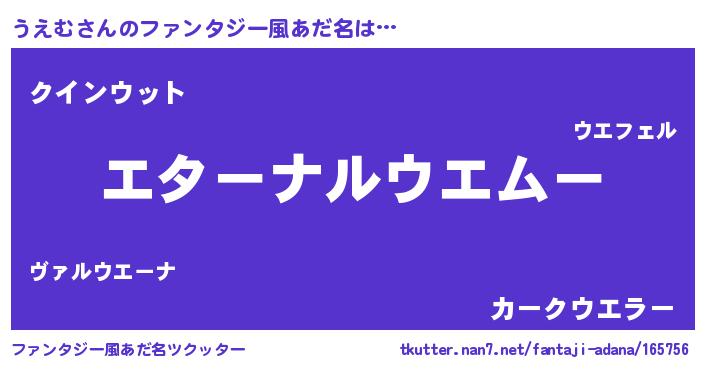 | 女子向けラノベタイトル風あだ名 | 『うえむの雑貨屋さん』『うえむ恋絵巻』 |