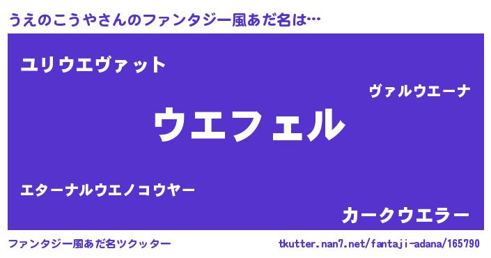 | 男性向けラノベタイトル風あだ名 | 『ウエノコウヤアートオンライン』 |
