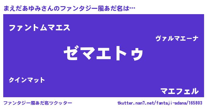 | ポケモン風あだ名 | 『マエセウス』『ヒマエダアユミ』 |