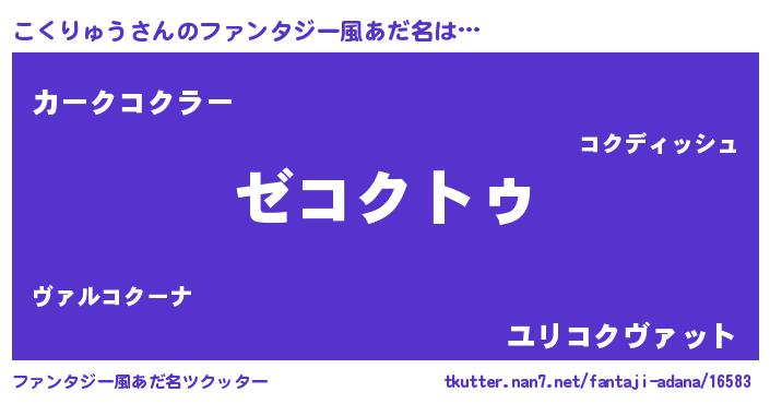 | 男性向けラノベタイトル風あだ名 | 『Re:こくりゅうから始める異世界生活』 |