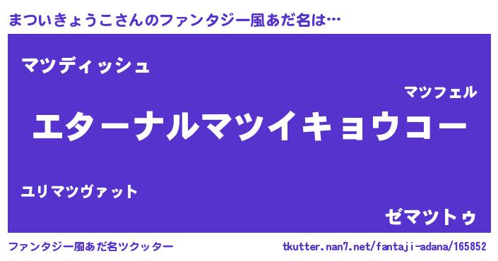 | 意味不明あだ名 | 『まついきょうこフォーエバー』 |