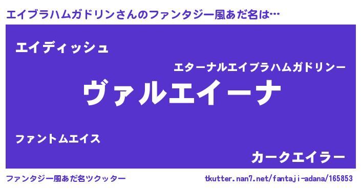 | 意味不明あだ名 | 『住所不定無職エイブラハムガドリン(13歳)』 |