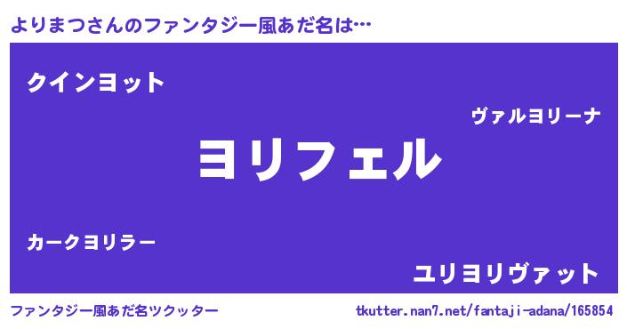 | 男性向けラノベタイトル風あだ名 | 『ヨリマツアートオンライン』 |