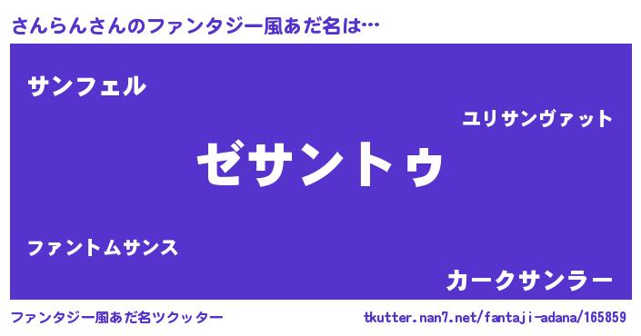 | 意味不明あだ名 | 『自称さんらん』『ペロリンさんらん』 |