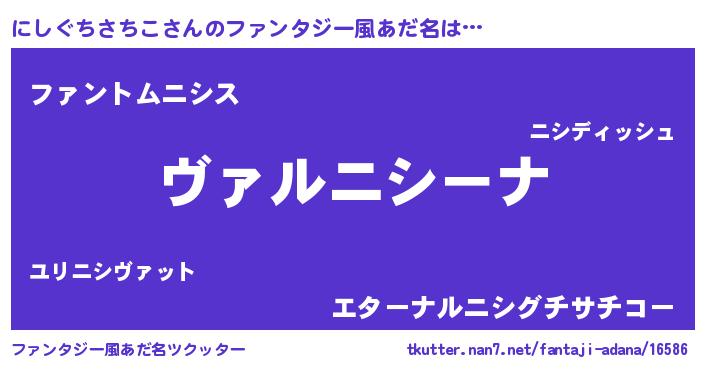 | 男性向けラノベタイトル風あだ名 | 『魔弾の王とにしぐちさちこ』 |