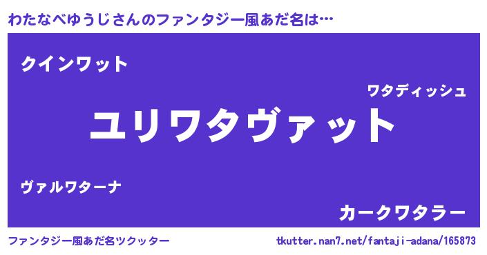 | 男性向けラノベタイトル風あだ名 | 『わたなべゆうじ~年齢イコール彼女いない歴の魔法使い~』 |